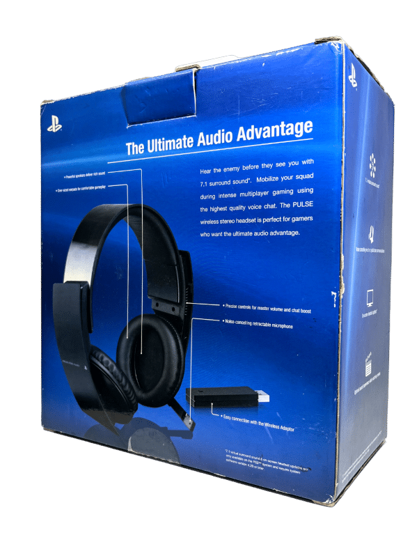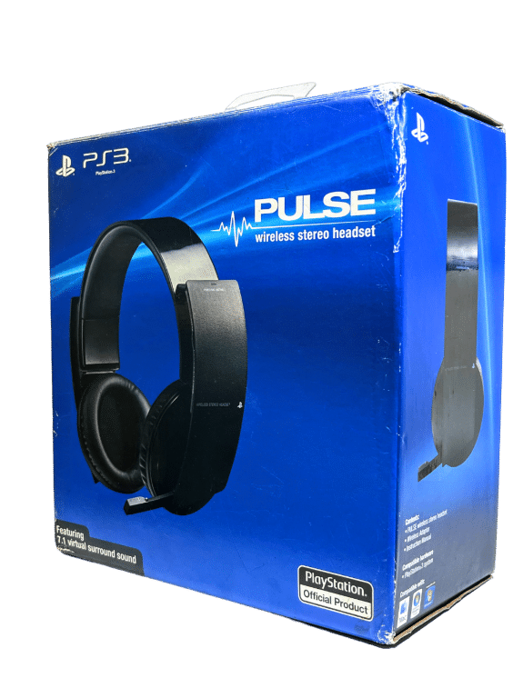 RARE FIND: Official SONY PlayStation 3 / PS3 Wireless PULSE Headset – in excellent condition and complete with original box + wireless USB adapter / dongle + inner card mount + instructions. This preowned authentic SONY product is a tidy and complete collector’s item – suitable as a gift. Refer images.
