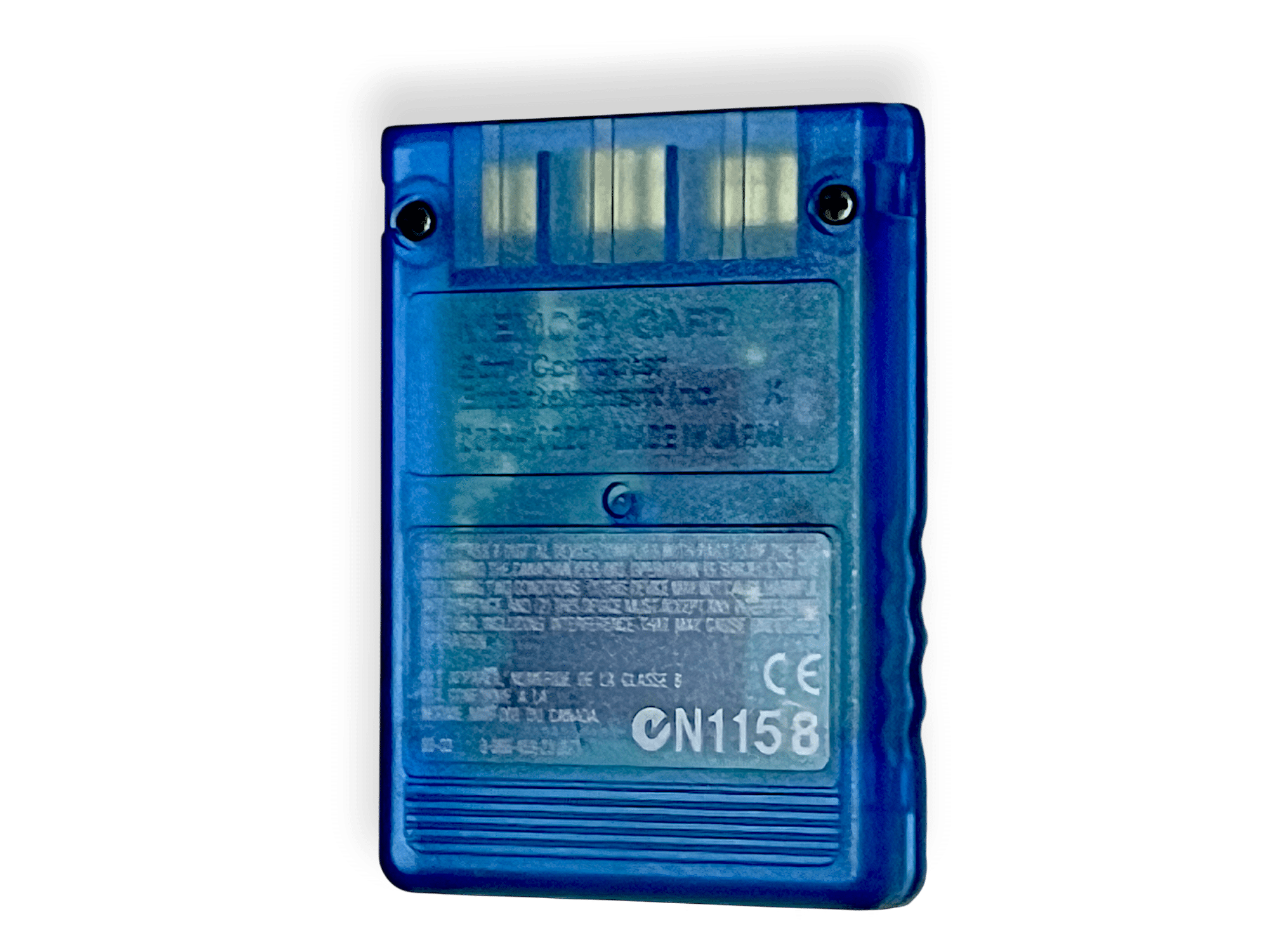 This transparent blue Sony GENUINE SONY PS2 Memory Card 8MB combines official MagicGate functionality with a distinctive see-through design. Ideal for saving game progress while adding a visual flair to PS2 accessory collections.