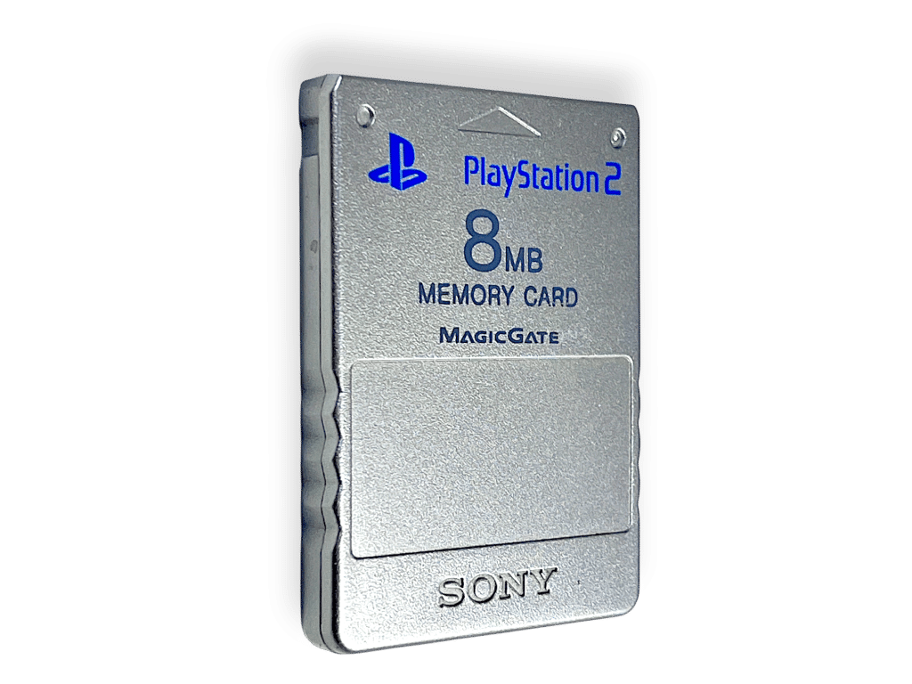 Sony official 8MB memory card in silver finish. Stores PS2 game saves securely and is compatible with all PlayStation 2 consoles. A premium colour variant cherished by collectors.