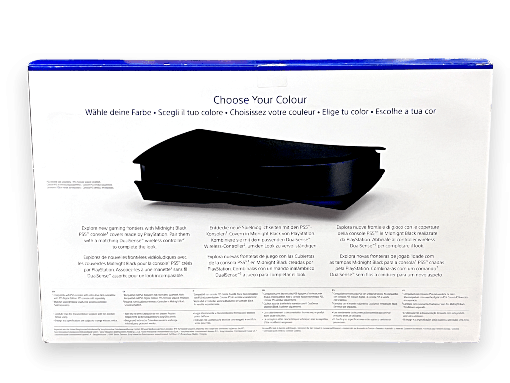 These official Sony PlayStation 5 Black Console Covers are designed to customise the look of your PS5 while maintaining a perfect factory fit. Made by Sony specifically for the PS5 Disc Edition, they replace the original white panels with a sleek black finish that matches other PS5 accessories. Easy to install and crafted to the same standards as the original covers, they preserve proper airflow and console performance while giving your PS5 a clean, understated look.