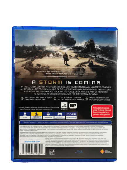Excellent condition & 100% complete with contents: Ghost of Tsushima Director’s Cut for SONY Playstation 4 / PS4. This preowned game comes complete with case, cover, carded insert, and game disc.