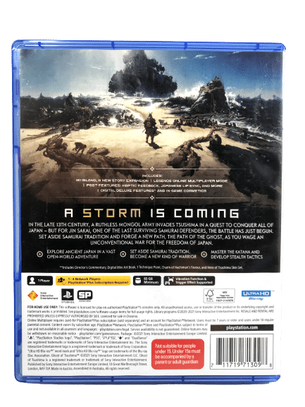 As the island burns in the wake of the first wave of the Mongol assault, courageous samurai warrior Jin Sakai stands resolute. As one of the last surviving members of his clan, Jin is resolved to do whatever it takes, at any cost, to protect his people and reclaim his home. He must set aside the traditions that have shaped him as a warrior to forge a new path, the path of the Ghost, and wage an unconventional war for the freedom of Tsushima.
