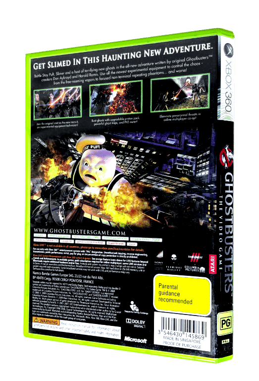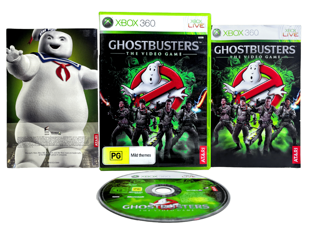RARE Authentic XBox 360 Edition in Mint Condition & 100% complete with contents: GHOSTBUSTERS THE VIDEO GAME. This preowned game is in Pristine condition and complete with case, cover, manual / booklet, and game disc. Authentic UK edition with the signature 12 embedded in the cover art in place of the pictured New Zealand PG. Condition is immaculate. A very tidy and complete collector’s item.