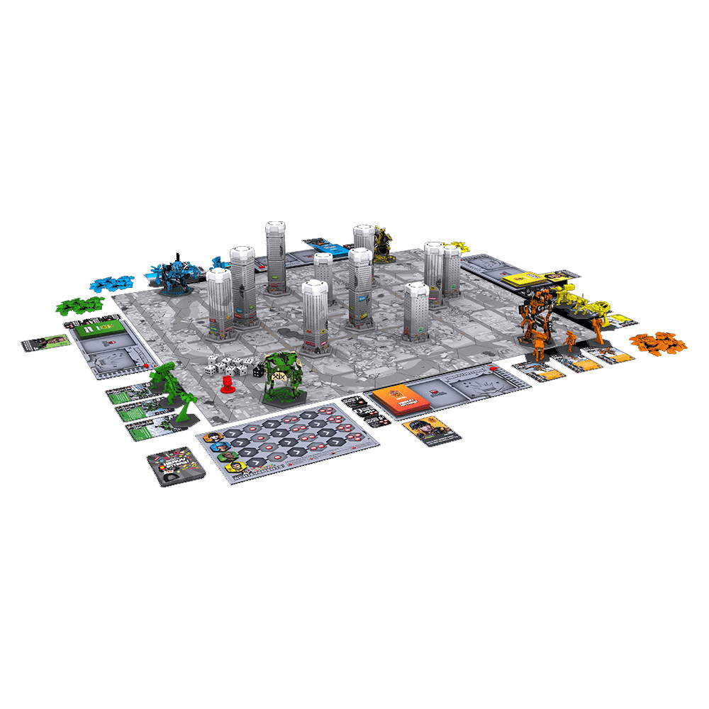 GKR: Heavy Hitters is a customizable tabletop game for 1–4 players, combining high-quality collectibles with dice-rolling, deck-building and tactical play. Pilot your Heavy Hitter (the biggest, baddest robot on the board) and a squad of three Support Units through the ruins of an old city, competing to either wipe your opponent off the map or reduce four skyscrapers to rubble!