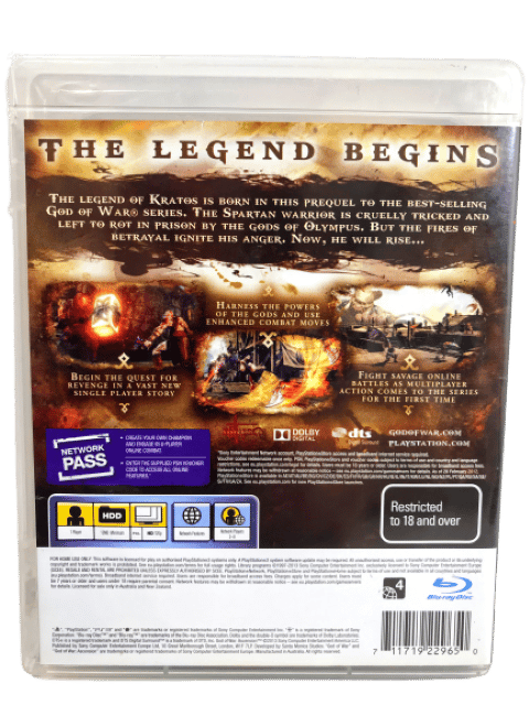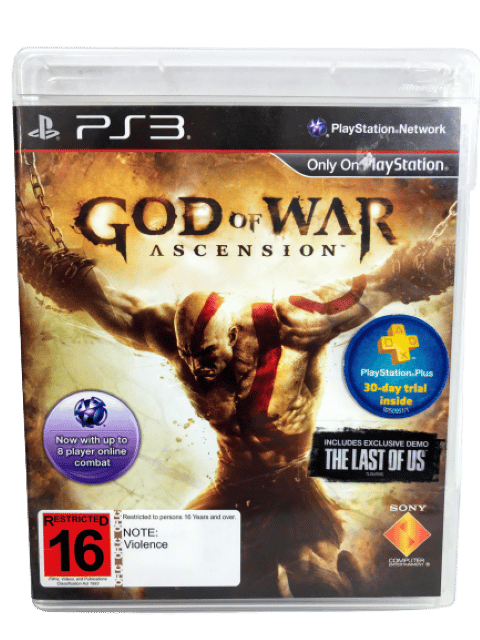 GOD OF WAR ASCENSION for SONY PlayStation 3 / PS3. This preowned game is in superb condition and includes case + cover + manual + promo cards + game disc.