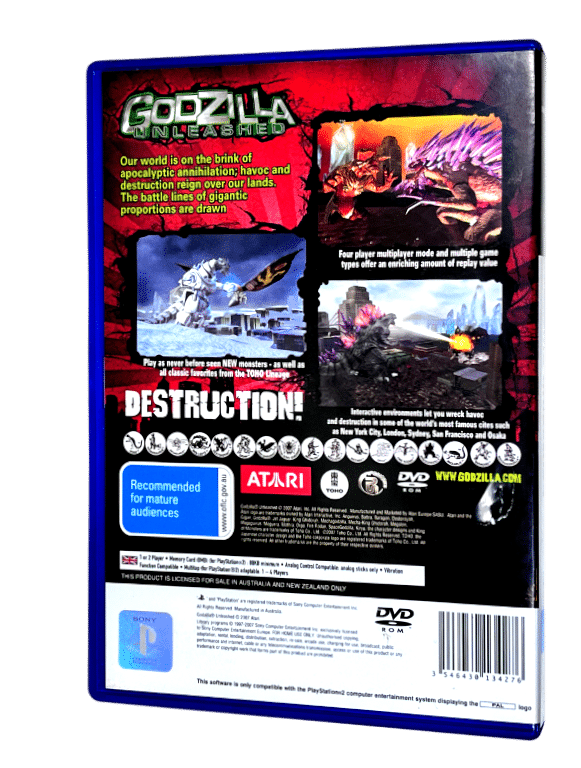 Excellent condition & 100% complete with contents: GODZILLA UNLEASHED for SONY PlayStation 2 / PS2. This preowned game is in superb condition and comes complete with case + cover + manual / booklet + game disc.