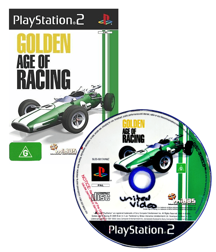 Rare drive & racing game which is seldom listed for sale here in NZ: The GOLDEN AGE OF RACING for SONY PlayStation 2 / PS2: . This preowned game disc is in good playing condition, with minor markings and superficial scratches only which do not hinder performance or gameplay in any way. Game comes inside pictured case with customised paper cover – designed by artist, D. Brown.