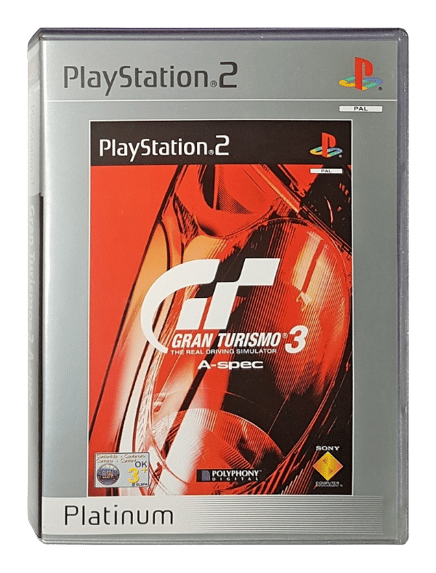 GRAN TURISMO 3 A-Spec for SONY PlayStation 2 / PS2. This preowned game is in excellent condition and comes complete with case + cover + manual / booklet + game disc. Promo card not included, but that was purely that: promotional, and not required for gameplay or completion.