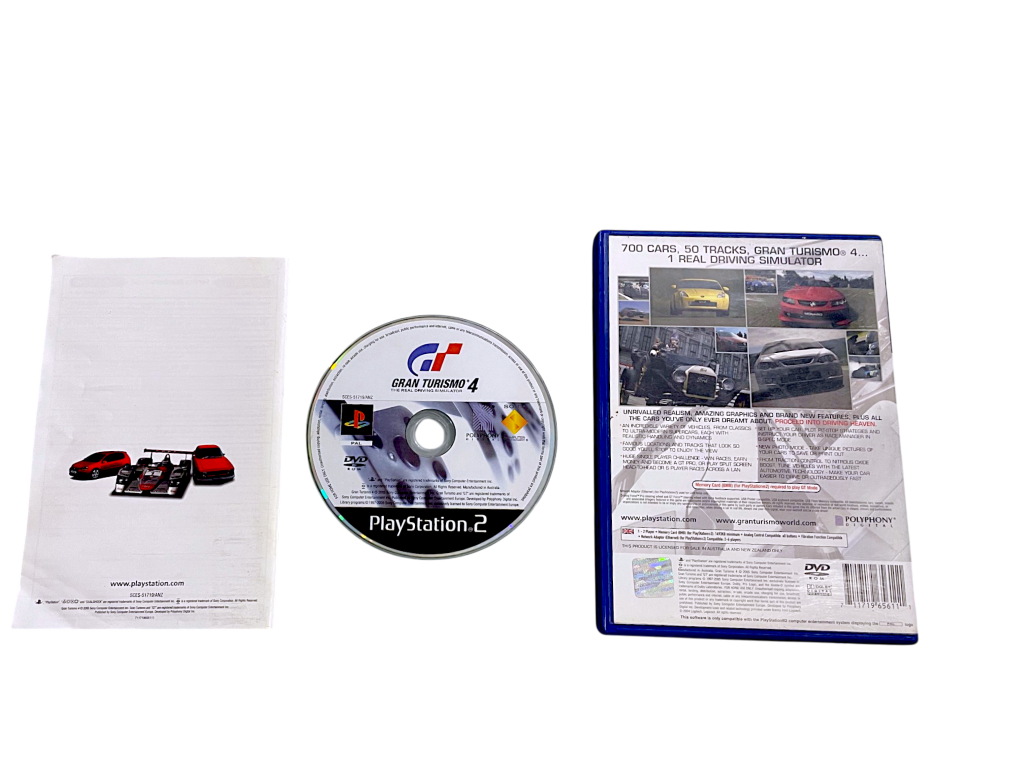 Gran Turismo 4 (PS2). This pre-owned SONY PlayStation 2 game is in good condition with mild markings and light superficial surface scratches only which are purely cosmetic and do not hinder gameplay or performance in any way. This game includes pictured contents. Refer photographs.