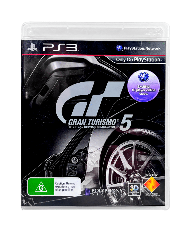 - Gran Turismo 5 the game complete with case + cover + manual / booklet + game disc (game is preowned and has been played – all other internal contents are as new)