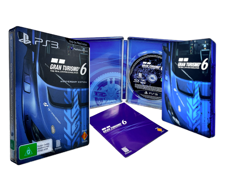 RARE LIMITED COLLECTOR’S STEEL CASE EDITION in Excellent Condition & 100% COMPLETE with ALL Contents, INCLUDING PLASTIC DISPLAY SLEEVE & STEELBOOK: Gran Turismo 6 / GT 6 / Gran Turismo VI THE COLLECTOR’S STEEL EDITION for SONY PlayStation 3 / PS3. This preowned Genuine Limited Steelbook Collector’s Edition is in great condition and includes each of the Plastic Display Sleeve + Steel Case + Manual / Booklet + Game Disc. Steelbook has some aging spots on the paint finish as pictured, but this is a purely cosmetic imperfection, and all other contents are fantastic. A tidy and complete collector’s item. Refer photographs.