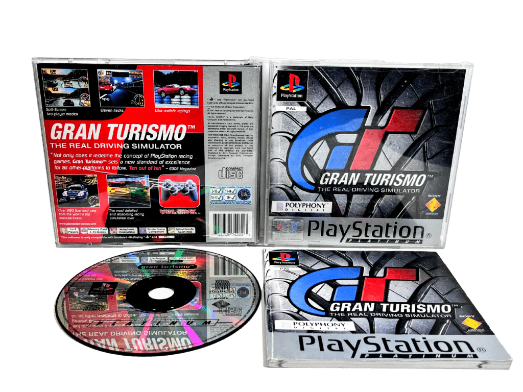 Excellent condition & 100% complete with contents: GRAN TURISMO The Original SONY PlayStation 1 game. This preowned game is in superb condition and comes complete with case + cover + manual / booklet + game disc. Overall, a tidy and complete collector’s item.