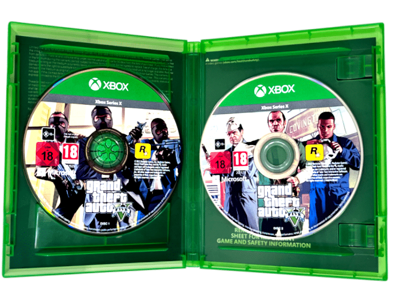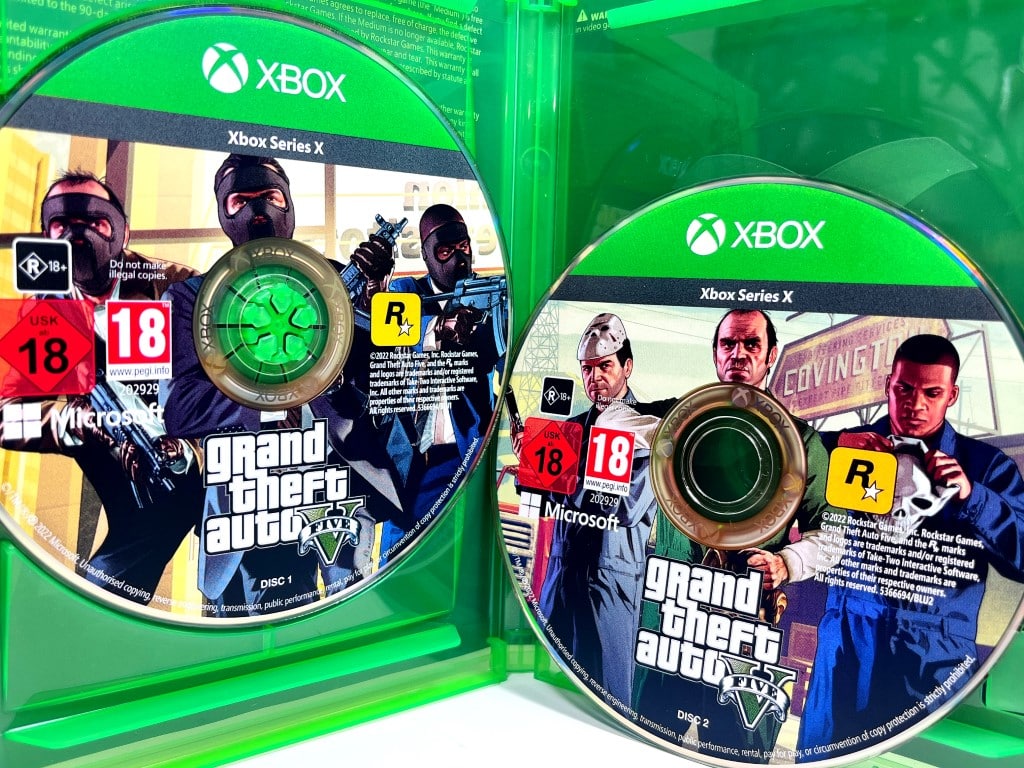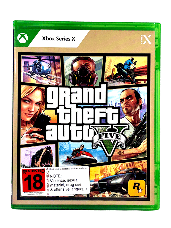 Mint condition & 100% complete with contents: GRAND THEFT AUTO 5 / GTA 5 / GTA V for XBOX SERIES X. This preowned game is in pristine condition and comes complete with case + cover + 2 x game discs.
