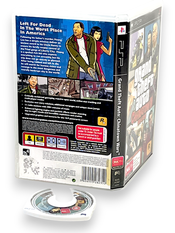 Description: Chinatown Wars brings the classic GTA formula to PSP with a unique top-down perspective and stylised visuals. Featuring an engaging story, open-world exploration, and signature Rockstar humour, it offers a fresh take on the series. Its porility and addictive gameplay make it a standout title for handheld collectors.