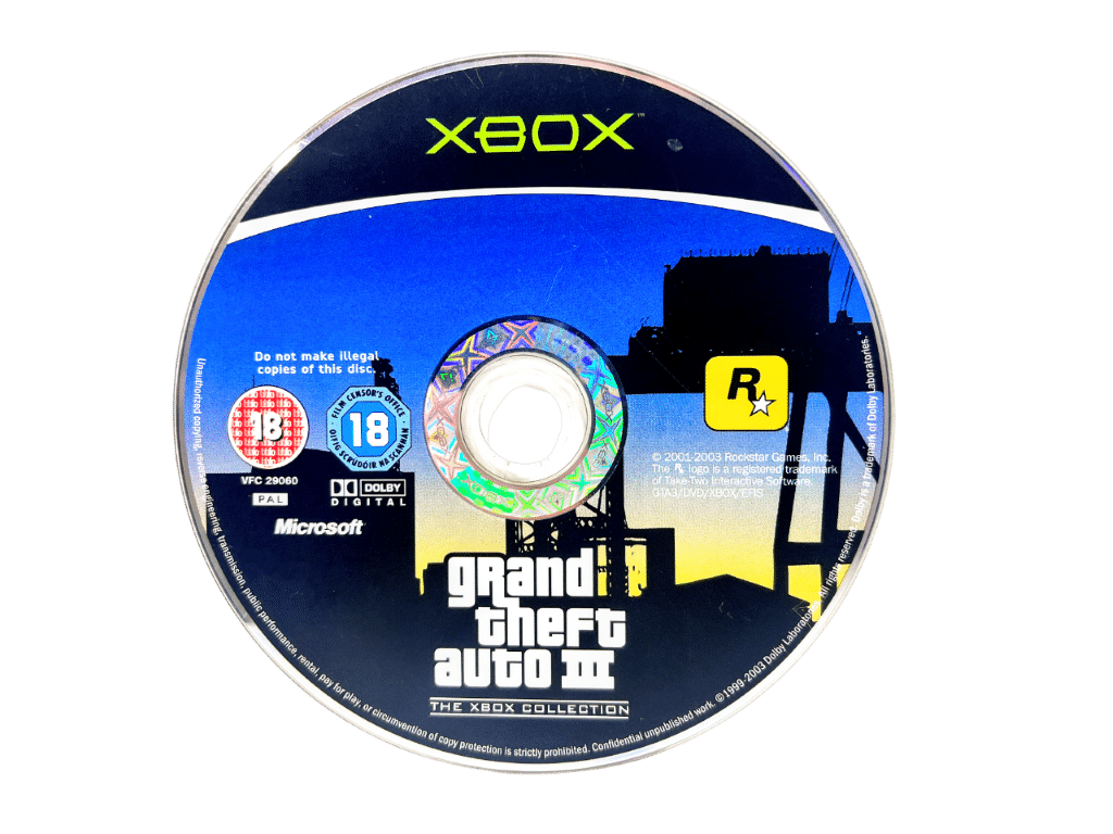 Grand Theft Auto III / Grand Theft Auto 3 for Original XBox. This preowned game disc comes inside an empty blank case. Please note that the original case is NOT included. Some light superficial markings / cosmetic scratches, but these are very minor imperfections which do not affect game play in any way.