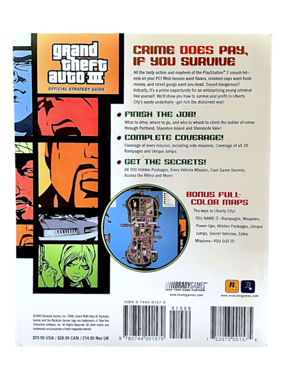 Similar games each sold separately: Grand Theft Auto Vice City, Grand Theft Auto San Andreas, Driver 2, Mafia, The GetawayDescription: Dive deeper into Liberty City with this official GTA III strategy guide, packed with mission walkthroughs, maps, secrets, and gameplay tips. Perfect for completionists and fans wanting to master every aspect of the game, this guide enhances your experience with detailed insights and bonus content including full-colour maps. A great collectible companion piece for any GTA enthusiast.