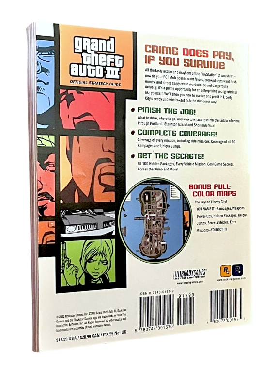 Description: Dive deeper into Liberty City with this official GTA III strategy guide, packed with mission walkthroughs, maps, secrets, and gameplay tips. Perfect for completionists and fans wanting to master every aspect of the game, this guide enhances your experience with detailed insights and bonus content including full-colour maps. A great collectible companion piece for any GTA enthusiast.