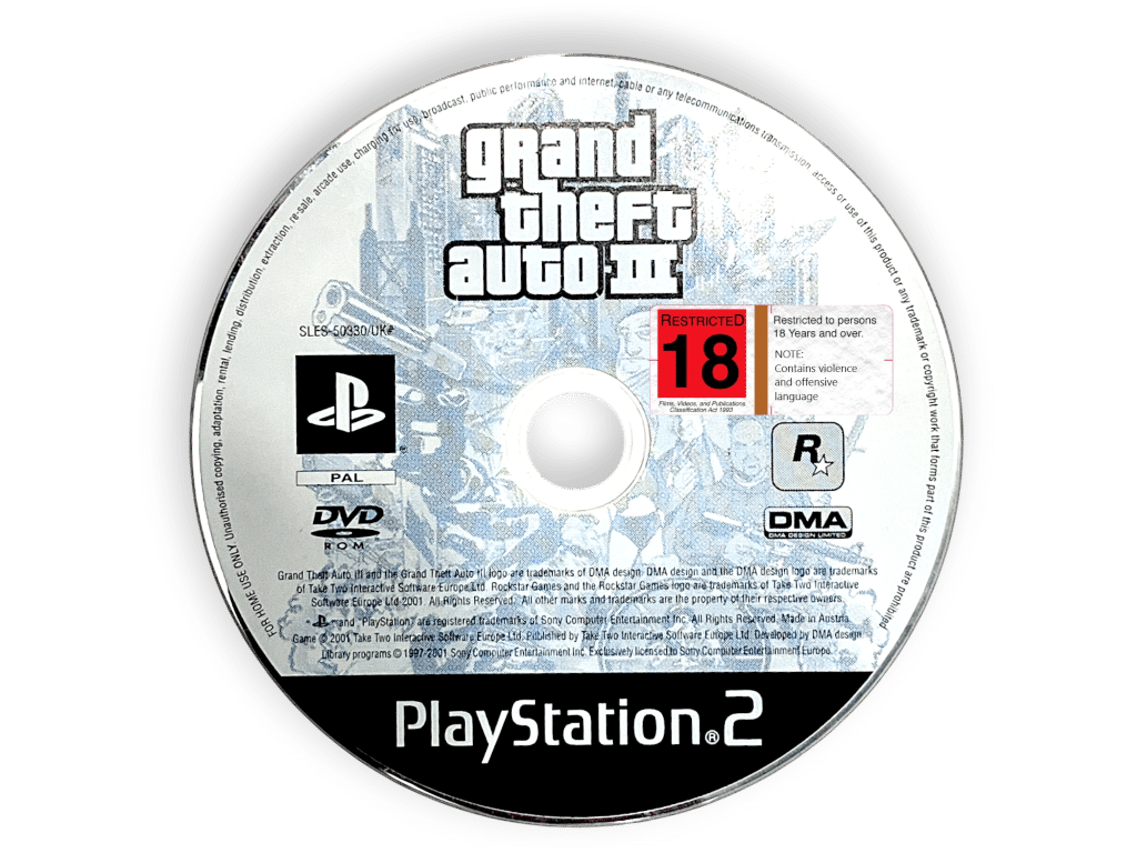 Grand Theft Auto III (PlayStation 2, Disc Only). This pre-owned Sony PlayStation 2 game disc is in good playing condition with light scratches only, which are not in the gameplay or performance in any way. Please note this disc comes inside an empty blank case because the original case is not included here.
