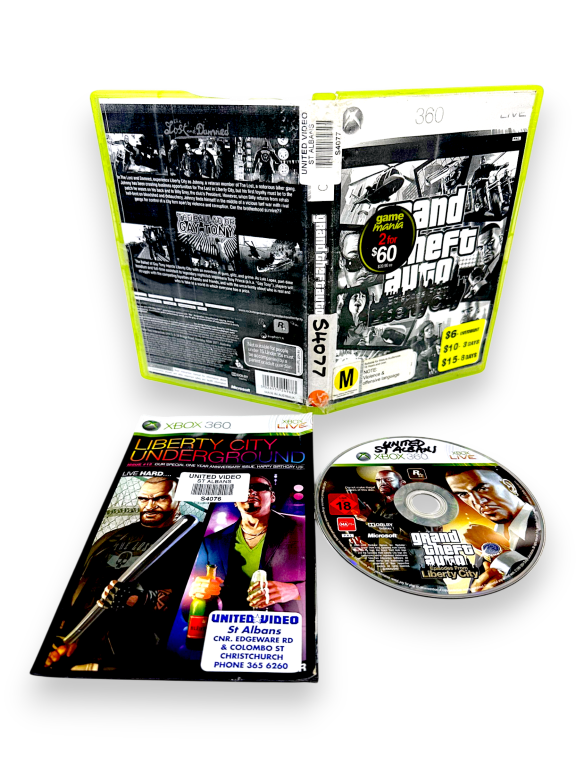 Grand Theft Auto IV: Episodes from Liberty City (Xbox 360). This pre-owned game is in good condition with mild markings and faint surface scratches only and includes the pictured case + manual / booklet + game disc with a photocopied ex-rental paper cover (not original paper cover). Refer to the photographs.