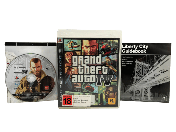 GENUINE ORIGINAL PRINT in excellent condition & 100% complete with BOTH manual AND map: GRAND THEFT AUTO 4 / GTA 4 / Grand Theft Auto IV for SONY PlayStation 3 / PS3. Preowned and complete with case, cover, manual / booklet, map and game disc. A tidy and complete collector’s item.
