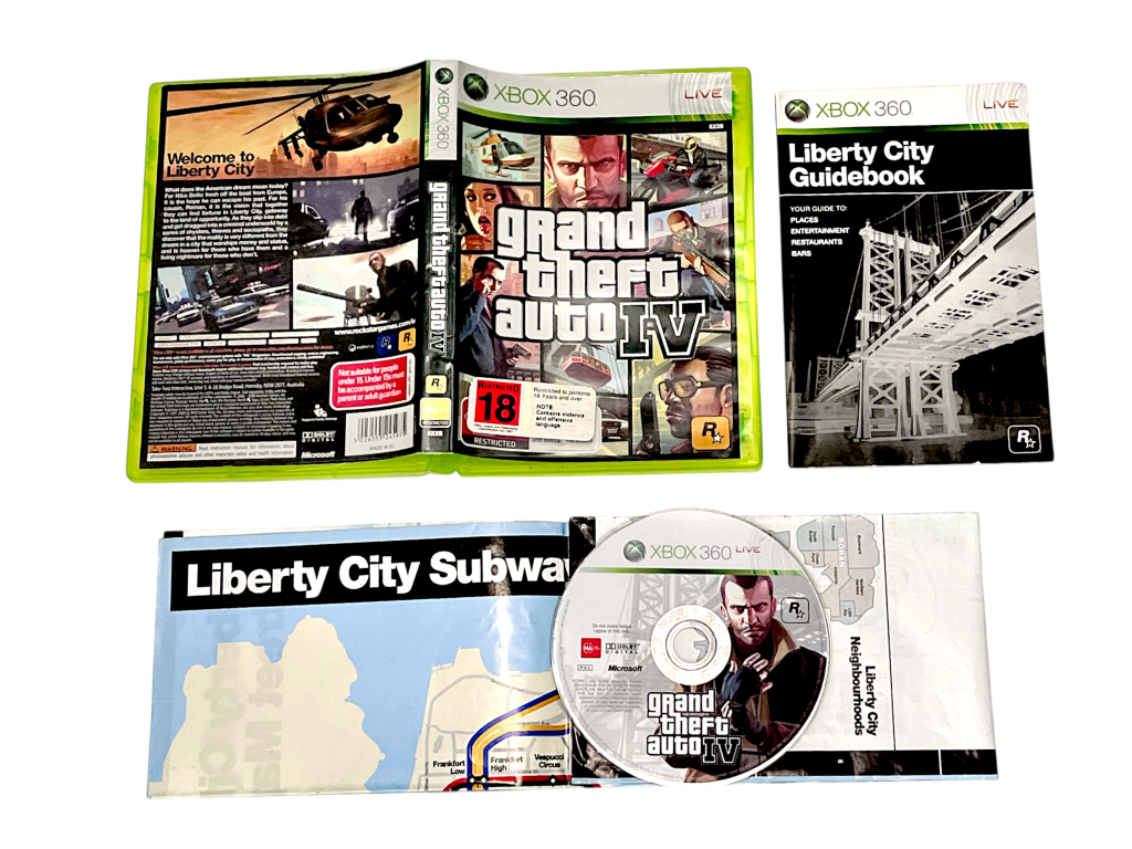 Grand Theft Auto IV (Xbox 360). This pre-owned Xbox 360 game is in good condition and comes complete with MAP + Manual + Case + Cover + Game Disc.