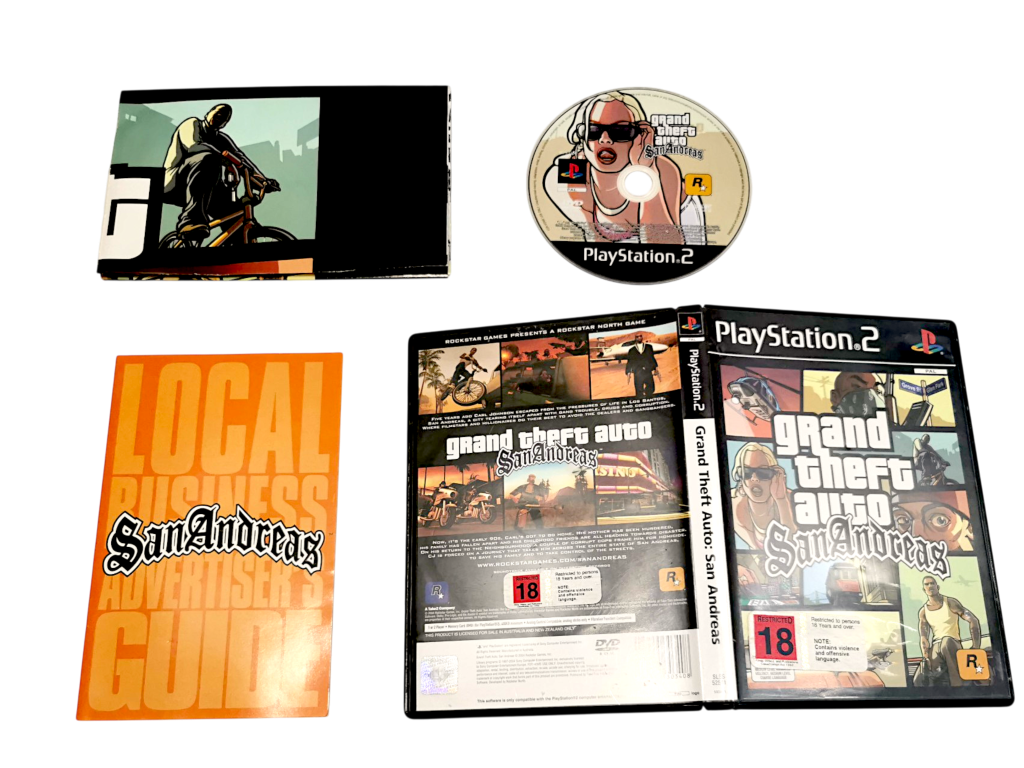 GENUINE ORIGINAL PRINT “BLACK EDITION” in excellent condition and complete with BOTH MAP AND MANUAL: Grand Theft Auto: San Andreas (PS2) *EXCELLENT & COMPLETE*. This pre-owned Sony Playstation 2 game is in excellent condition and comes complete with pictured case + cover + instruction manual / booklet + game disc. This game includes the pictured contents; refer to the photographs.