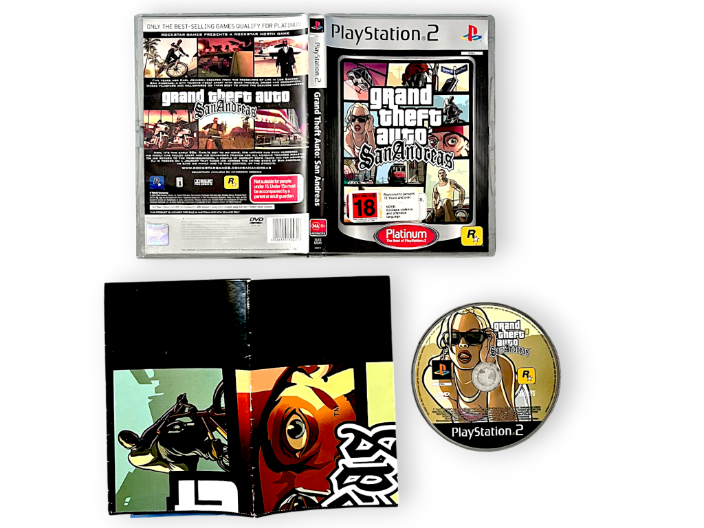 DESCRIPTION: Grand Theft Auto: San Andreas is one of the most iconic open-world games ever created. Set in a vast state inspired by California, players follow CJ’s journey through crime, family, and survival. Featuring an enormous map, countless activities, and deep customisation options, the game offers unparalleled freedom. Its engaging story and memorable characters have cemented its legacy as a classic. The Platinum edition provides the full experience of this groundbreaking title on PS2.