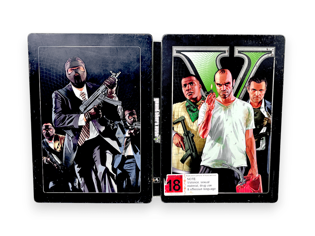 A premium steelbook edition of Rockstar’s legendary open-world crime epic. Follow Michael, Franklin, and Trevor in a massive sandbox packed with missions, heists, vehicles, and chaotic freedom. Includes both discs (Install & Play) and striking artwork. A collector’s favourite and one of the defining games of its generation.