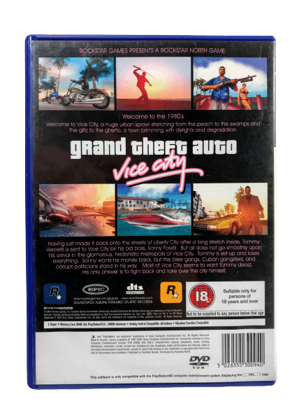 From the decade of big hair, excess and pastel suits comes a story of one man’s rise to the top of the criminal pile as Grand Theft Auto returns to the PlayStation�®2 computer entertainment system this October. Vice City is a huge urban sprawl ranging from the beach to the swamps and the glitz to the ghetto, and is the most varied, complete and alive digital city ever created. Combining non-linear gameplay with a character driven narrative, you arrive in a town brimming with delights and degradation and are given the opportunity to take it over as you choose.