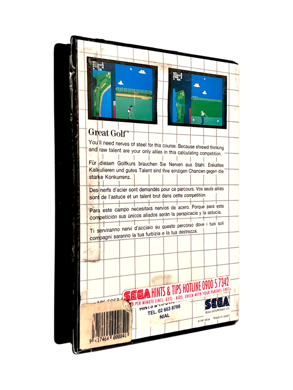 Great Golf (Sega Master System). This preowned SEGA Master System game is in good used condition and comes with pictured case and contents. Refer photographs.