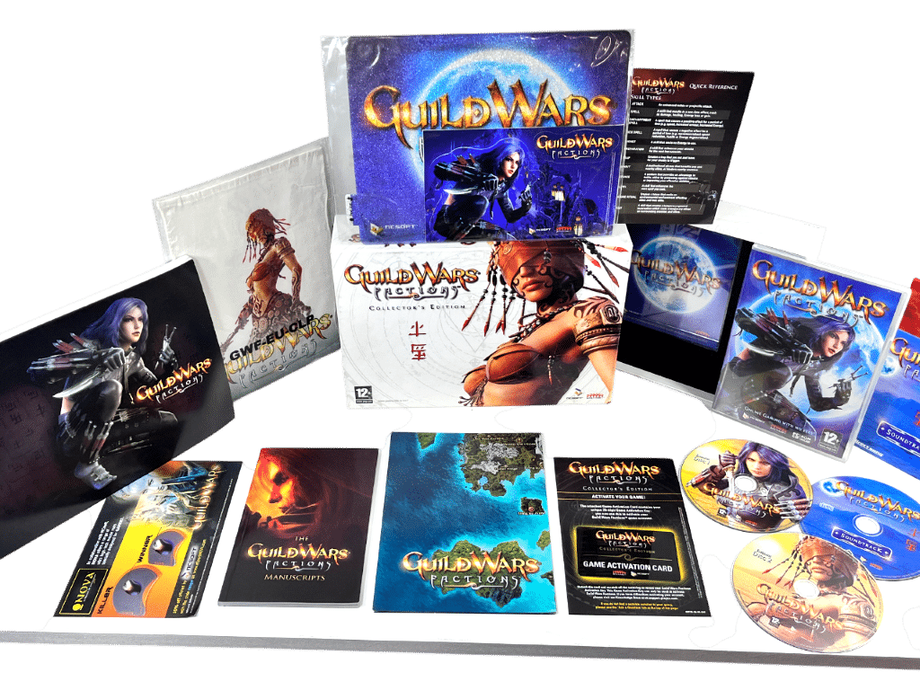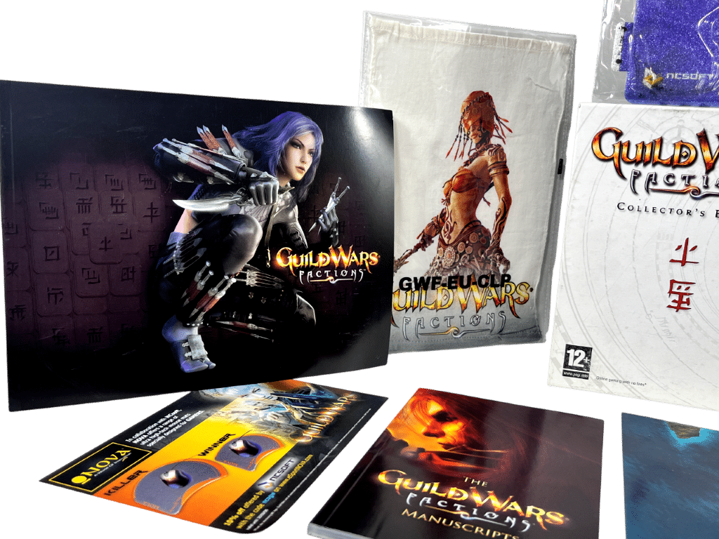 Guild Wars Factions: Collector’s Edition (BIG BOX SET) *MINT COMPLETE*. This preowned PC BIG BOX SET is in pristine condition – immaculately cared for since new and complete with all pictured contents. A VERY tidy collector’s box set. Refer photographs.