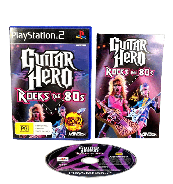 Excellent Condition & 100% Complete with Contents: GUITAR HERO ENCORE ROCKS THE 80s / Guitar Hero Rocks the ’80s for SONY PlayStation 2 / PS2. This preowned game is in superb condition and comes complete with case, cover, manual / booklet, and game disc.