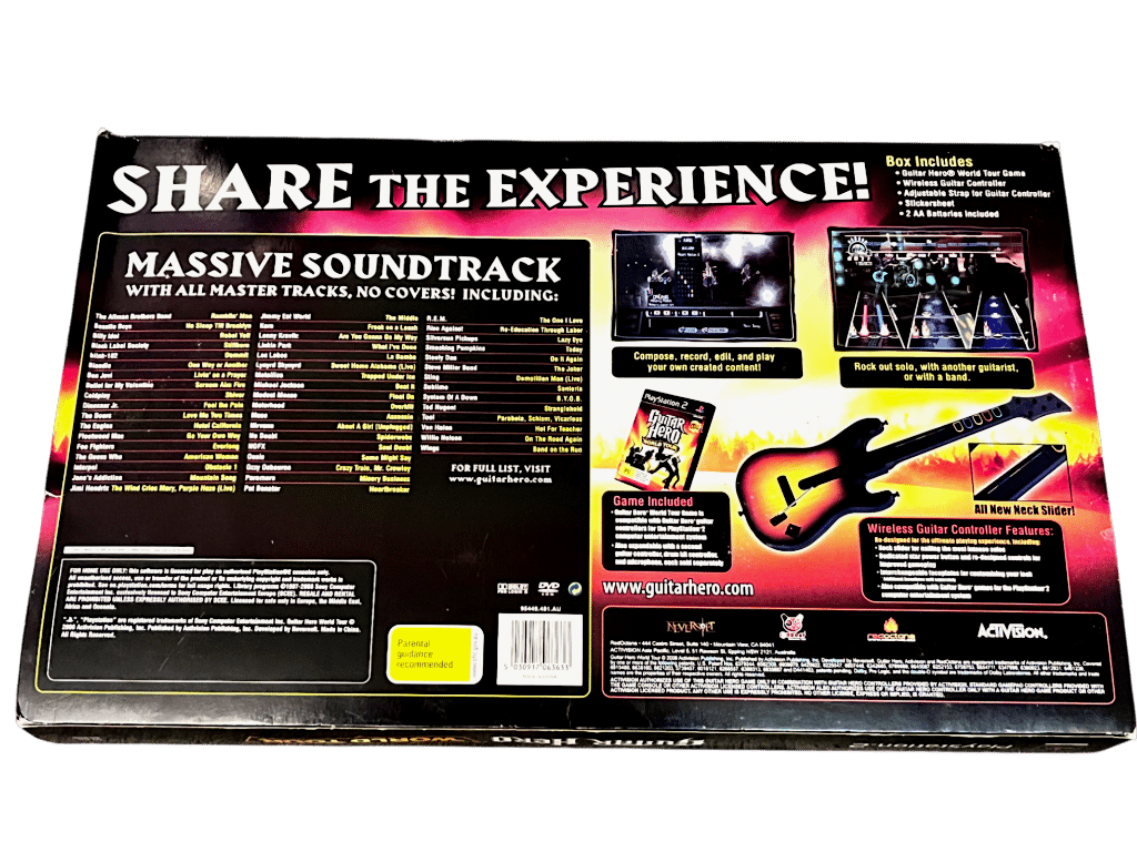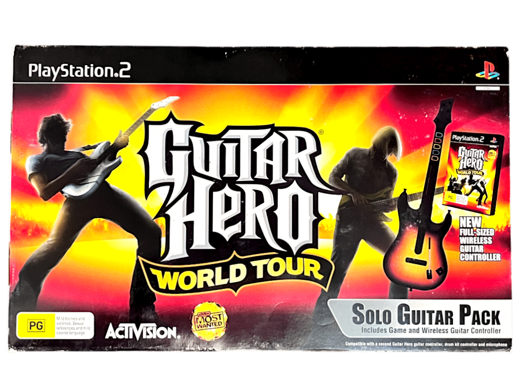 GUITAR HERO WORLD TOUR DISPLAY BOX (Excellent Condition) *No Guitar* This preowned PS2 Guitar Hero Box is in excellent condition as pictured. Please note that the guitar is NOT included.