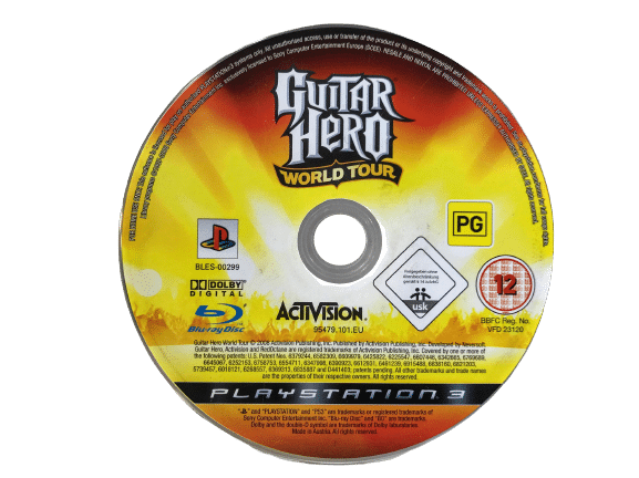 GUITAR HERO WORLD TOUR for SONY PlayStation 3 / PS3. This preowned game disc is in excellent condition and comes inside an empty blank case. Please note that the original case is NOT included.