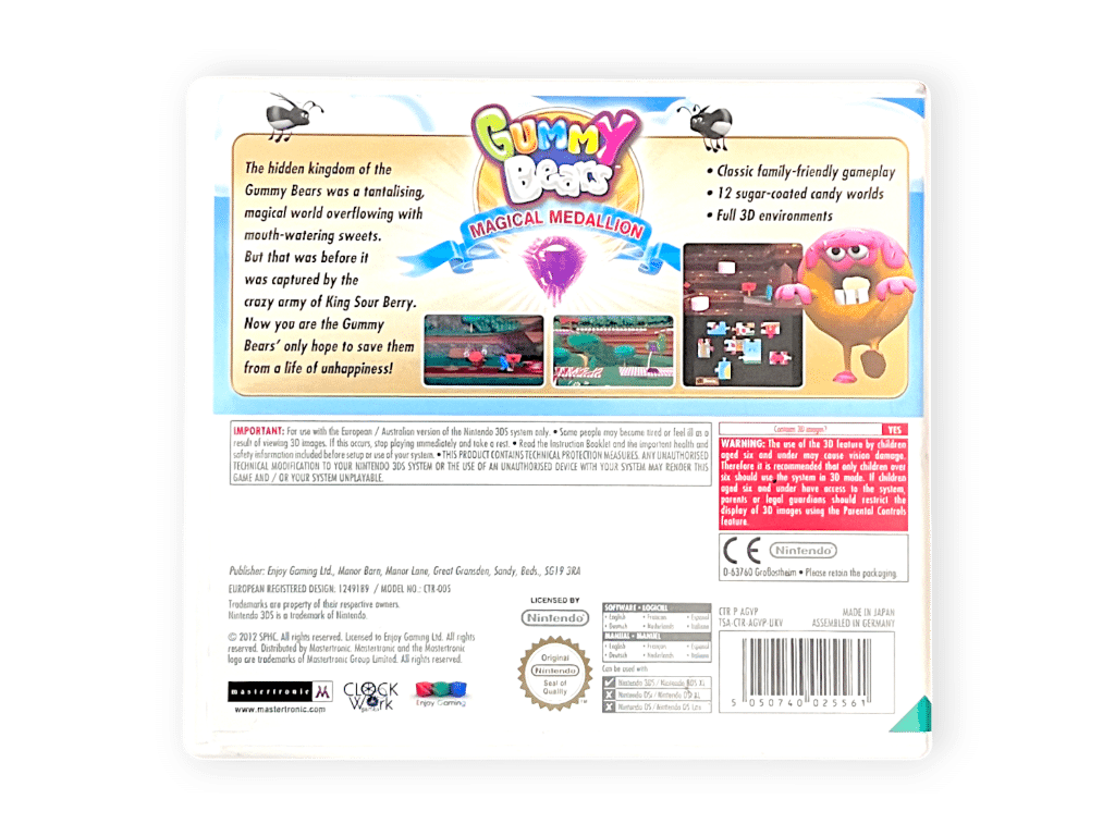 Gummy Bears: Magical Medallion (Nintendo 3DS) *MINT COMPLETE*. This preowned Nintendo 3DS game is in excellent condition and complete with original case + cover + manual / booklet + game cartridge. Refer image.