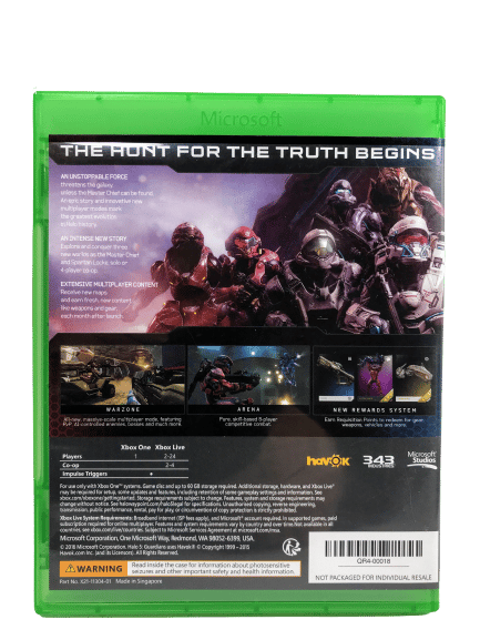 Excellent condition & complete with contents: HALO 5 GUARDIANS for XBox One. This preowned game is in superb condition and includes case + cover + promo card + game disc. A tidy and complete collector’s item.