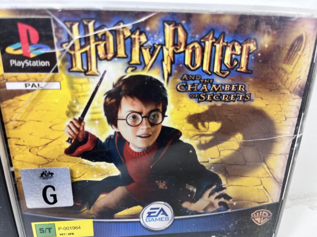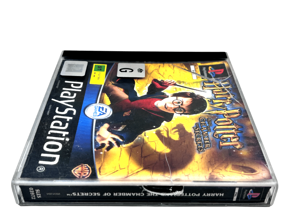 Very good condition & 100% complete with contents: Harry Potter & The Chamber of Secrets for SONY PlayStation / PS1. This preowned game comes complete with covers (both front & reverse cover slips) + manual / booklet + game disc – each in Excellent Condition. The front plastic panel of the case has a plastic crack which extends from a small plastic chip on one side of the case. If the case was replaced with all internal contents, this would be a very tidy and complete collector’s item.