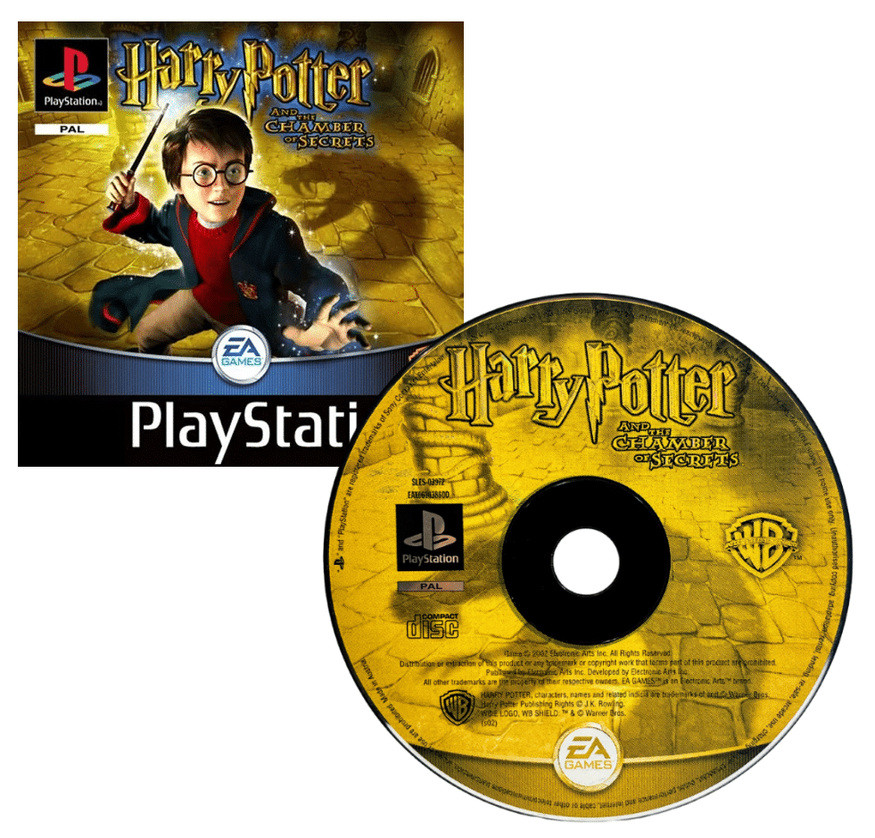 Harry Potter & the Chamber of Secrets for SONY PlayStation 1 / PS1. This preowned game disc is the Original Print Disc (non-Platinum) and is in very good condition with faint cosmetic markings and superficial scratches only which do not hinder game play in the slightest. This game disc comes inside an empty blank case. Please note that the original case is NOT included.