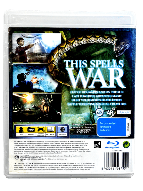 Genuine NZ Print in excellent condition & 100% complete with contents: Harry Potter & the Deathly Hallows Part 1 for SONY PlayStation 3 / PS3. This preowned game is in superb condition and comes complete with case, authentic New Zealand print cover (with the signature “M” classification embedded in the cover art, manual / booklet, and game disc.