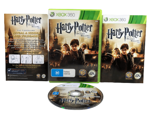 RARE FIND: Excellent Condition, & 100% Complete with Internal Contents: Harry Potter and the Deathly Hallows Part 2 for XBox 360. This preowned game is a tidy and complete collector’s item, with case, cover, manual / booklet, carded insert, and game disc.