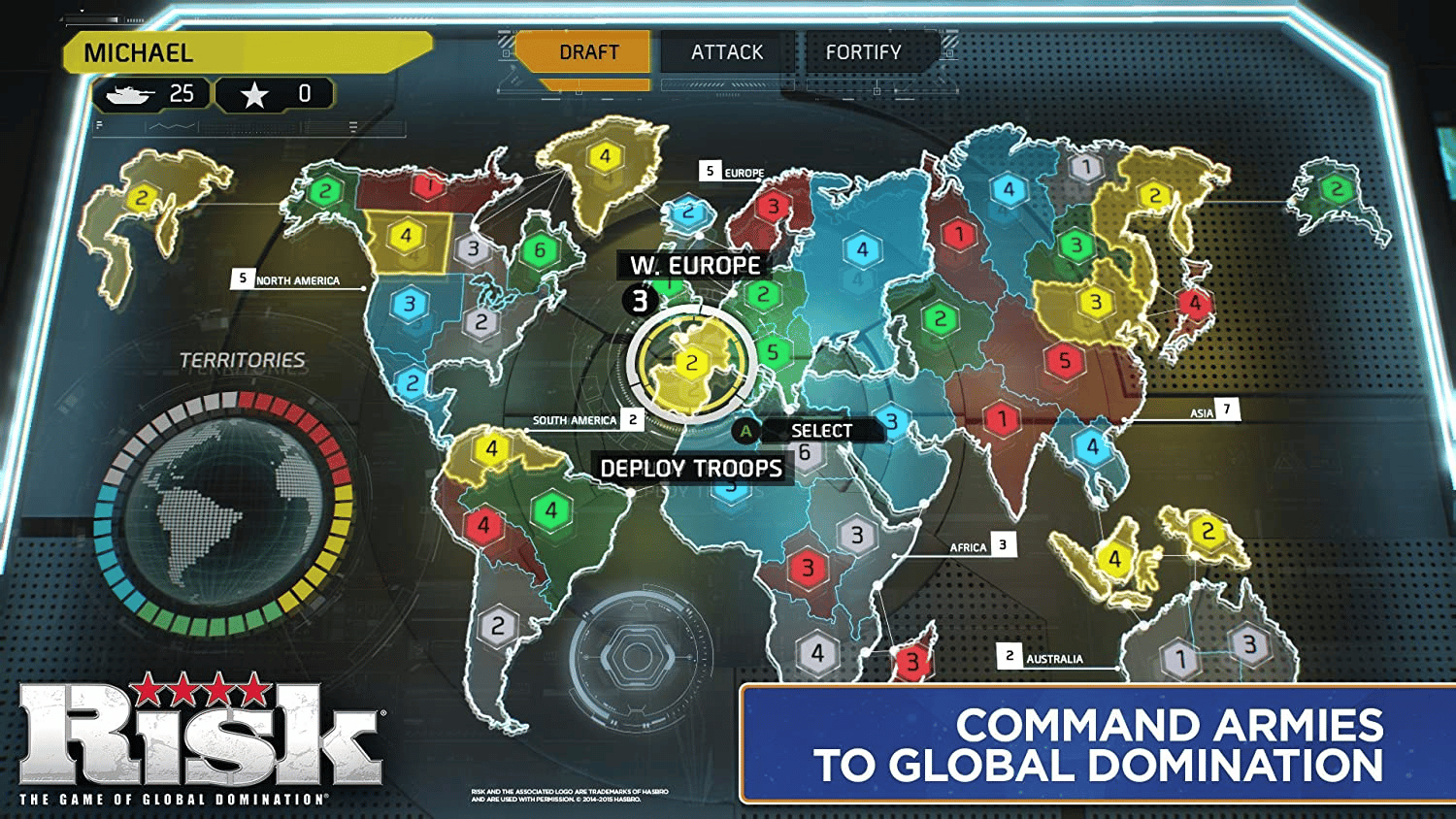 Trivial Pursuit has never been so much fun! A modern look, a highly interactive scenario, reinvented question types, and many other exciting innovations. The game is now more fun and inclusive for everyone through adapted difficulty levels and unique catch-up rounds that inject social moments offering players a fresh, original experience. - RISK – REACH TOTAL GLOBAL DOMINATION