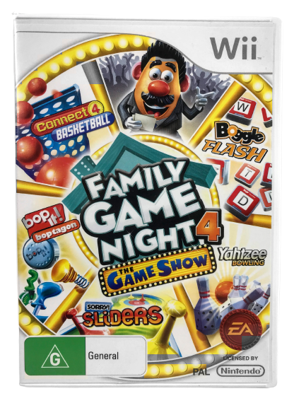 RARE Nintendo Wii game in mint condition & 100% complete with contents: The HASBRO Family Games Night Volume 4 – The Game Show for NINTENDO Wii. This preowned game is in excellent condition and comes complete with case, cover, manual / booklet, and game disc.
