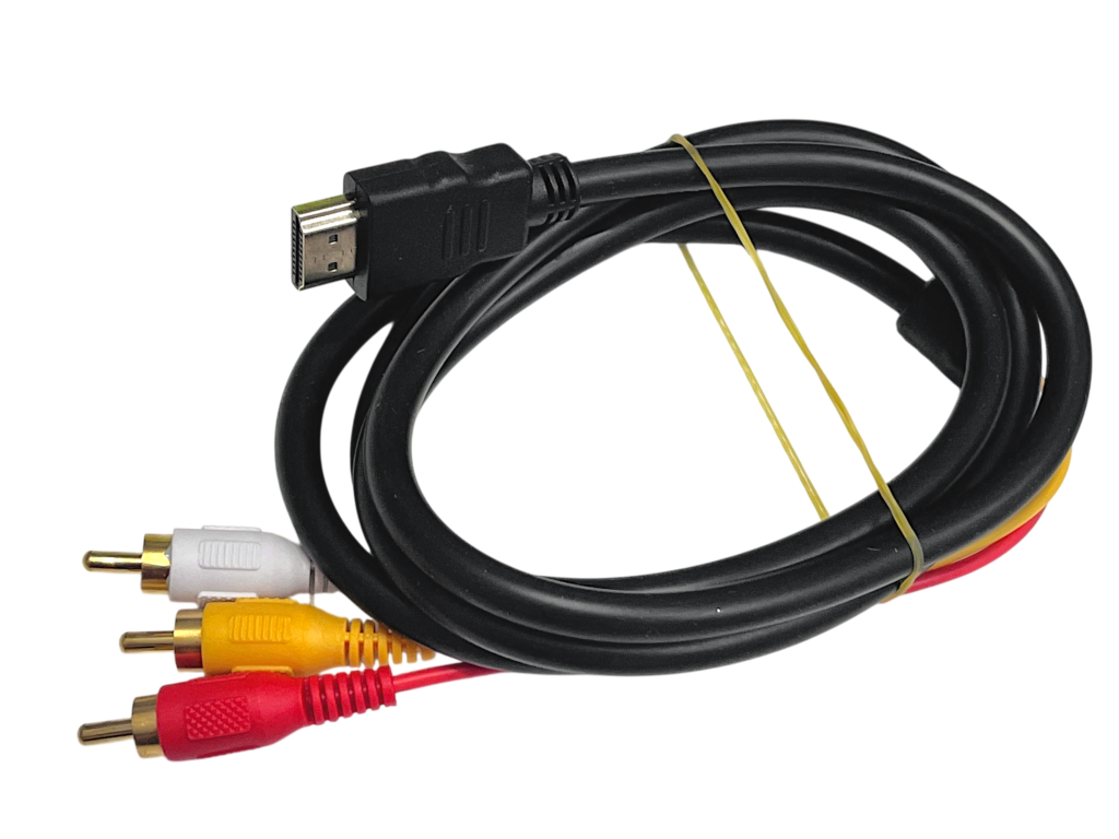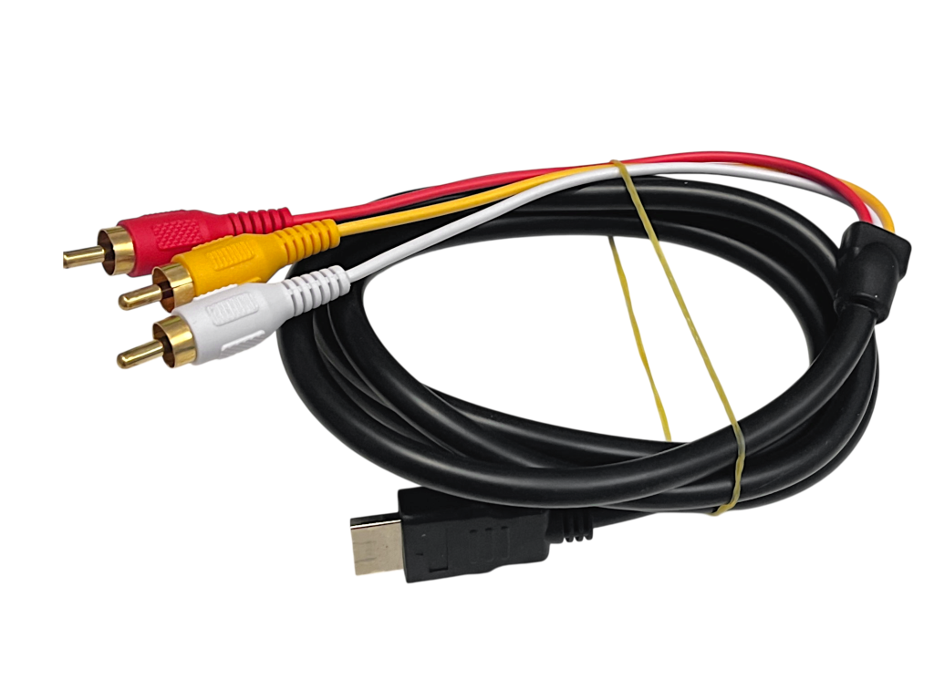 HDMI to AV Composite Cable (RCA Adapter). As New – HDMI to RCA Adapter (plugs into an HDMI slot and feeds to RED / WHITE / YELLOW RCA ports).
