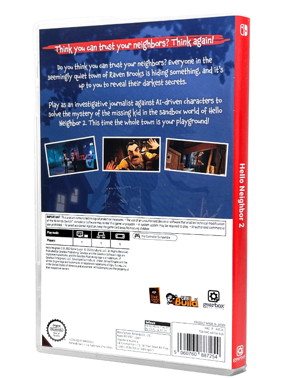 Hello Neighbor 2 for Nintendo Switch. This preowned game is in excellent condition and comes complete with case + cover + game cartridge.