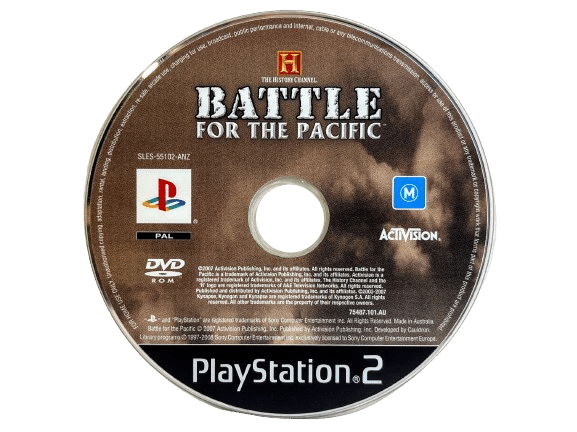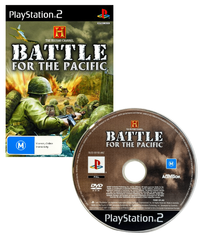 RARE History Channel World War VIDEO GAME: History Channel Battle FOR the Pacific THE GAME for SONY PlayStation 2 / PS2. This preowned game disc is in good playing condition and comes inside an empty blank case. Please note that the original case is NOT included. Some light scratches, but these are minor and do not inhibit game play in any way.