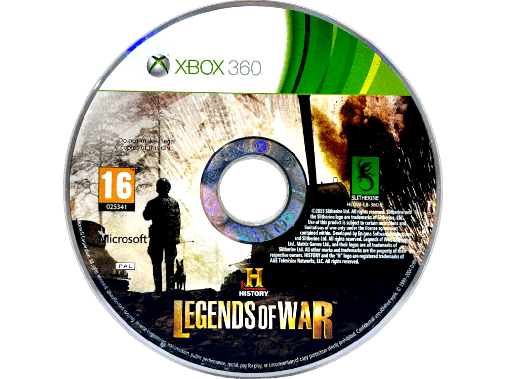 HISTORY CHANNEL: LEGENDS OF WAR (History: Legends of War Patton) for XBox 360. This preowned game disc is in Excellent condition and comes inside clear EB Games case (not original case). Case has one tiny plastic crack, but this is purely cosmetic, and the disc inside is immaculate.