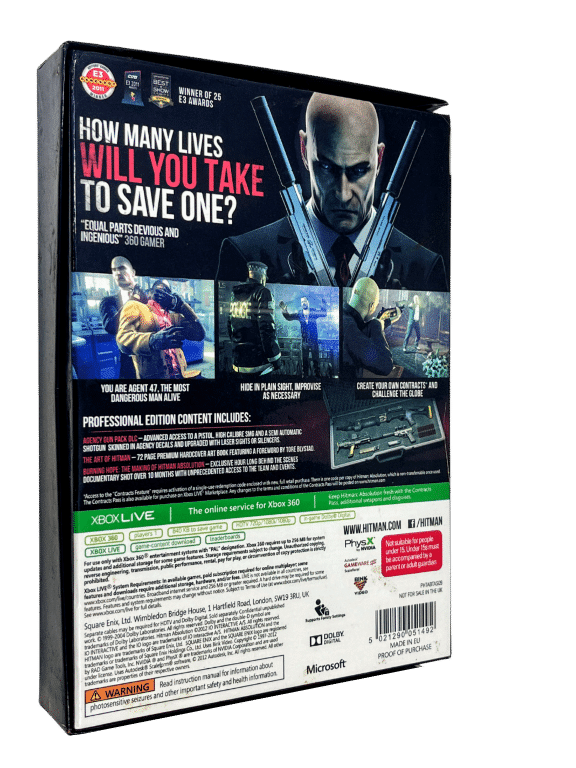 HITMAN ABSOLUTION PROFESSIONAL LIMITED EDITION (BOXED) in Mint Condition & 100% complete with contents – for XBox 360. This preowned authentic Limited Collector’s Boxed Edition is in pristine condition and includes: