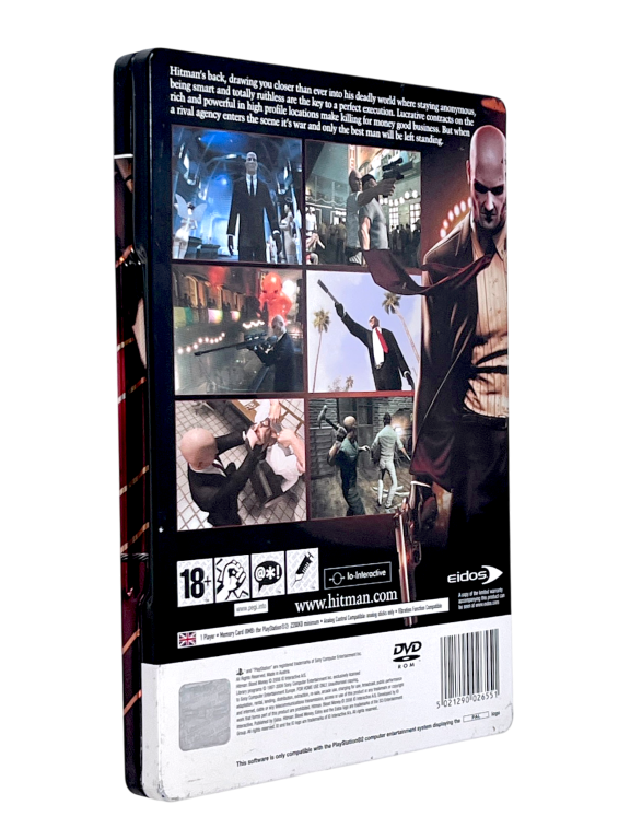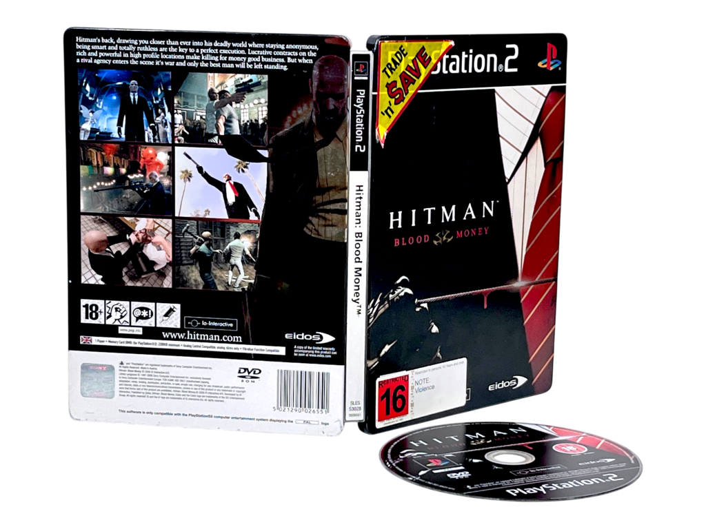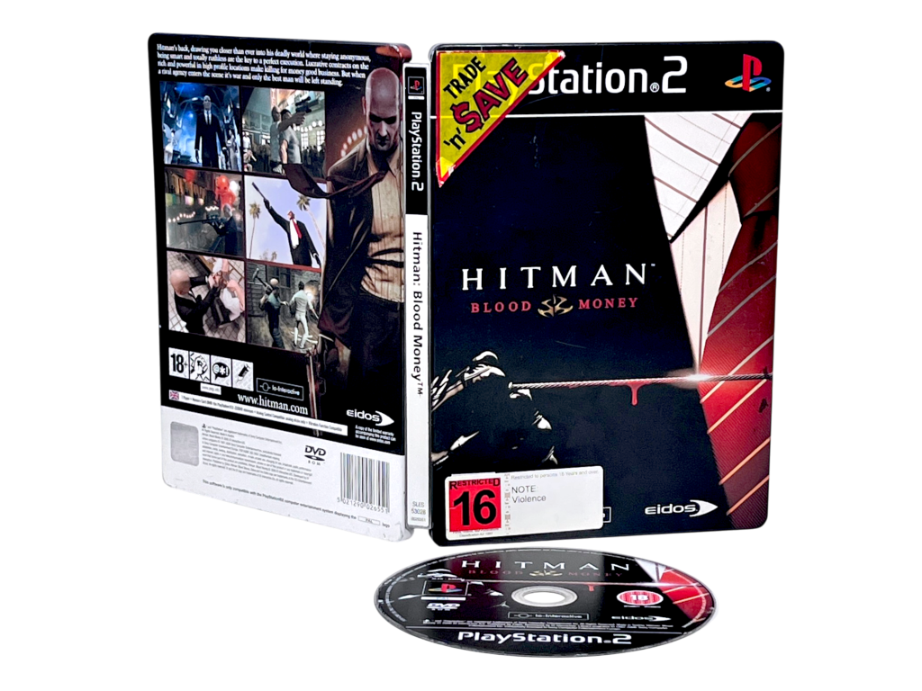 Hitman Blood Money (PS2) STEEL EDITION. This pre-owned official limited release steelbook collector’s edition features the striking collector’s steel case plus game disc. The game disc is in excellent condition with only mild markings. The steelbook is also good with a couple of dimples, one on the back and one on the front, a lovely collector’s item overall. Refer to photographs.