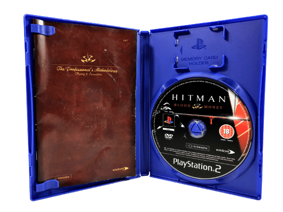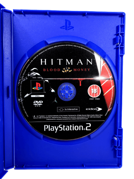 HITMAN BLOOD MONEY for SONY PlayStation 2 / PS2. This preowned game is in superb condition and includes case + cover + manual / booklet + game disc. Small paper scuff on front page of booklet, but this is purely cosmetic, and all other contents are great.