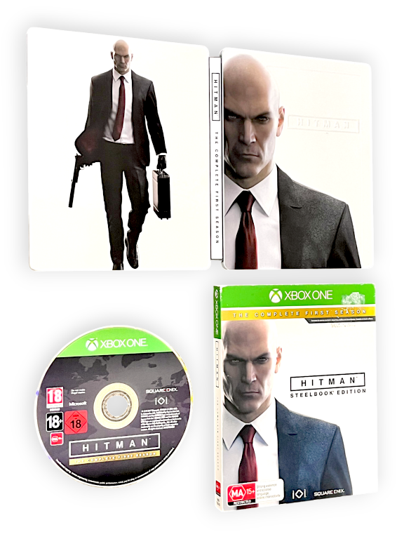 GENUINE LIMITED STEEL CASE COLLECTOR’S EDITION in excellent condition with BOX: HITMAN The Complete First Season STEEL EDITION / Hitman The Complete 1st Season STEEL EDITION for XBox One. This preowned authentic Limited Steel Case Collector’s Edition is in excellent condition and includes STEELBOOK + GAME DISC + DISPLAY BOX. Promo cards not included.